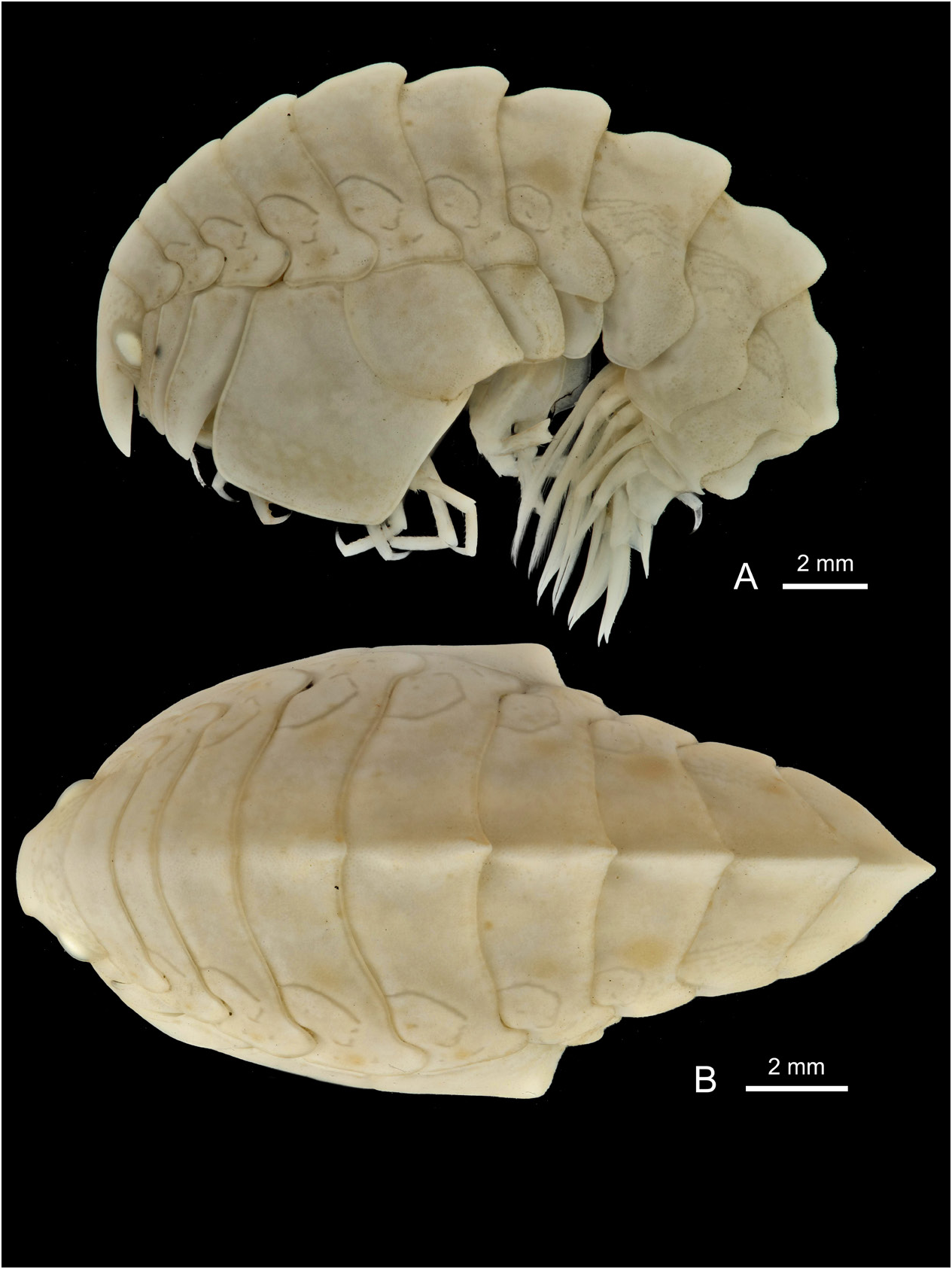 Fig. 167. Epimeria (Hoplepimeria) inermis subgen. nov. Walker, 1903, ♀, Bransfield Strait, ANT- XXIX/3, stn 199-4, RBINS, INV. 132953. A. Lateral habitus. B. Dorsal habitus.