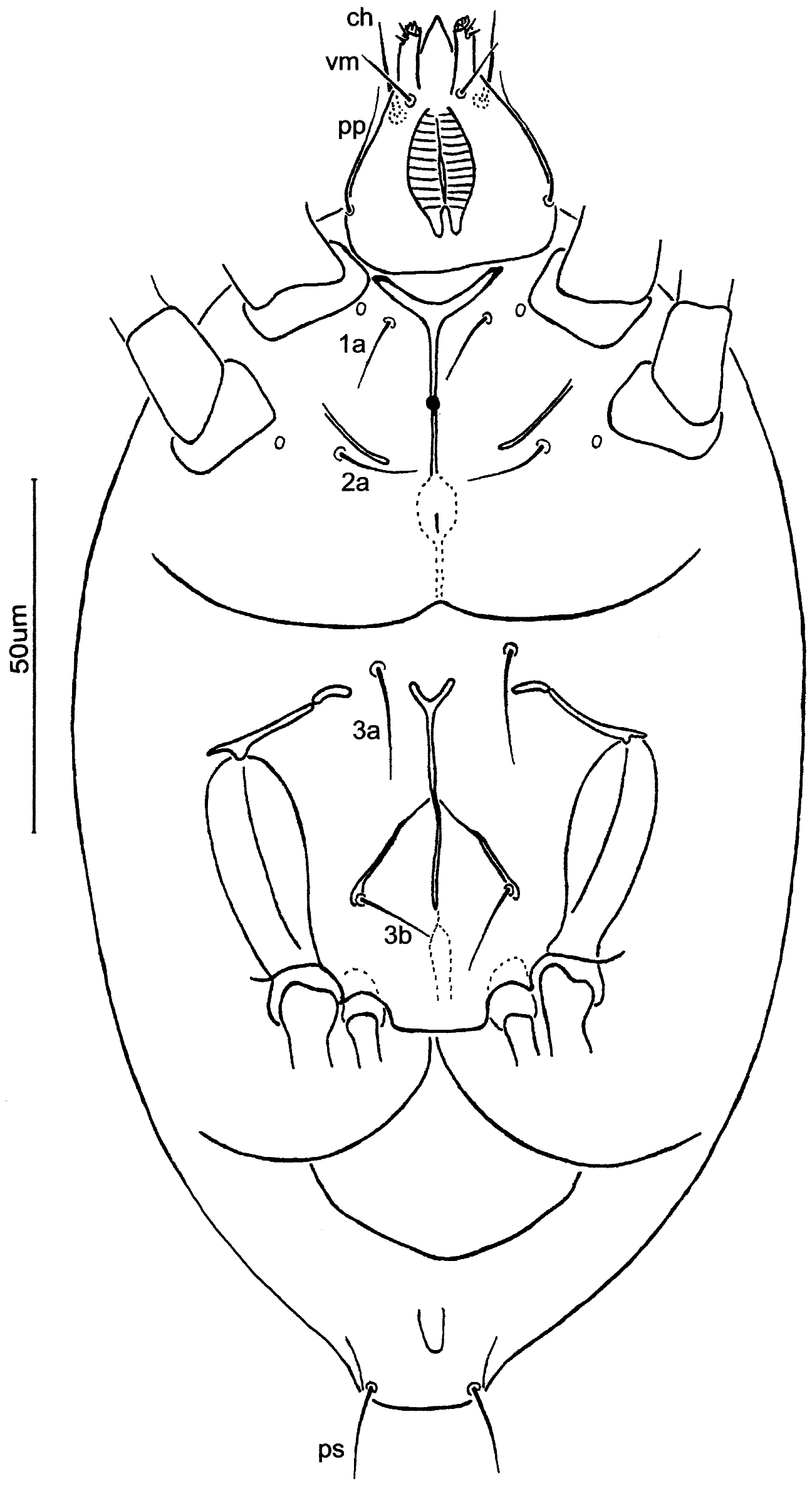 FIGURE 49. Ventral surface of Daidalotarsonemus folisetae Lofego & Ochoa, 2005 (female) [adapted from Lofego et al. (2005), used with permission from Zootaxa].