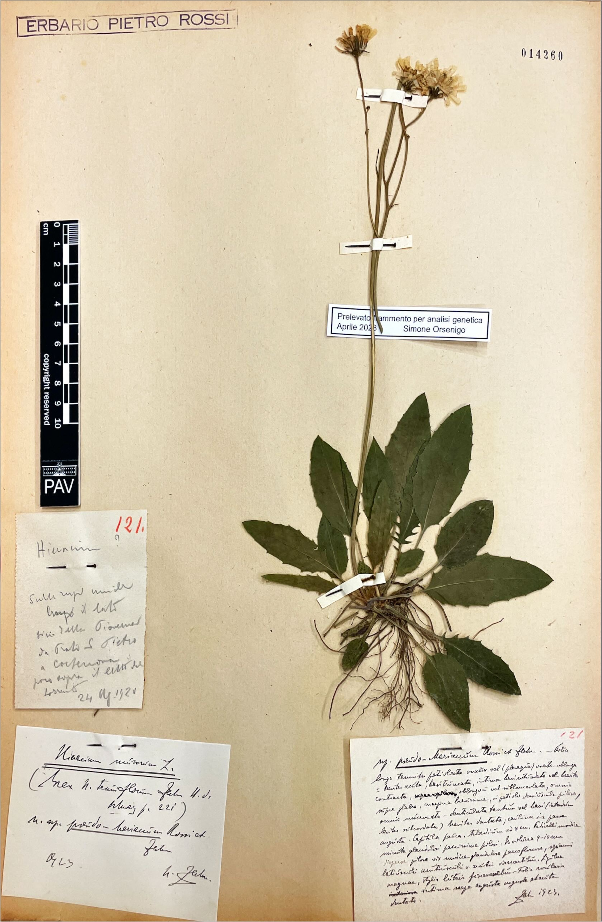 FIGURE 3. Lectotype of Hieracium murorum subsp. pseudomerianum (24 Aug 1920, P. Rossi, PAV-LOM014260).