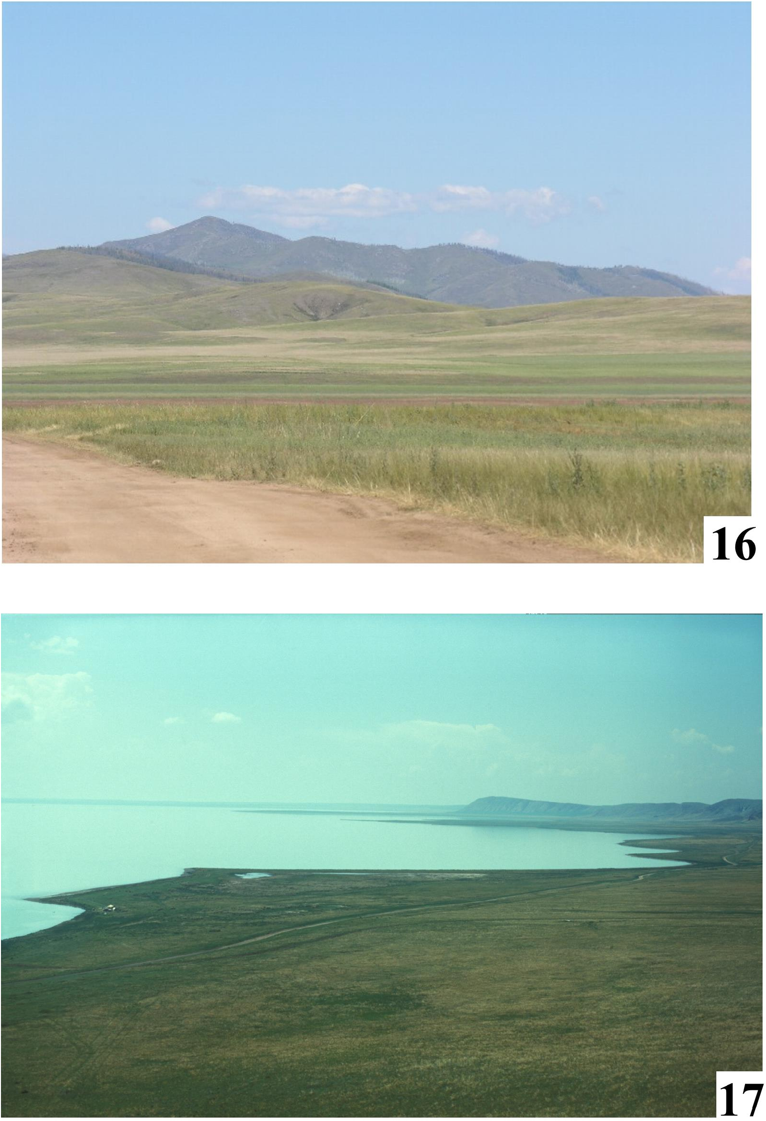 Figures 16–17. Habitats of Triphysa: 16 – T. nervosa biocellata, Central Mongolia, near Ulan-Baator (photo by A. Vaganov); 17 – T. nervosa biocellata (photo by O. Kosterin).