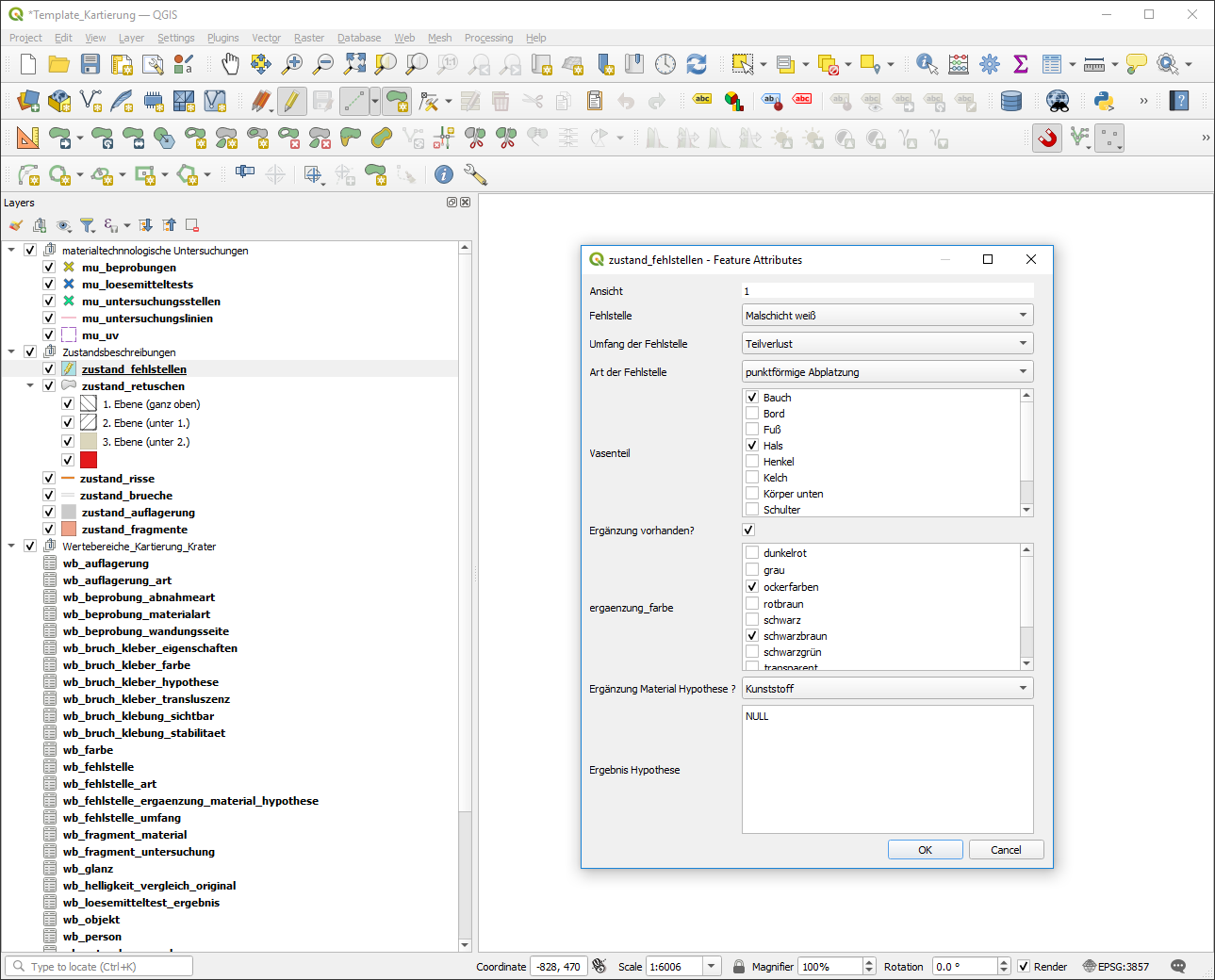 QGIS Template - Befunde in der Restaurierung