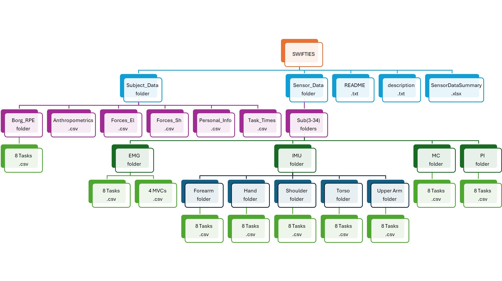 32 subjects (17 males, 15 females) performed 8 shoulder and elbow flexion-extension tasks with the dominant arm until fatigue. Tasks were performed at 25% and 45% of the maximum voluntary contraction (MVC) force in a static and dynamic manner. Every combination of movement (static or dynamic) x joint (shoulder or elbow) x load (25% or 45% of MVC Force) was performed by every subject. Subject data includes information on demographic and anthropometrics, rate of perceived exertion (RPE), endurance time of tasks, MVC forces, and loads lifted. Sensor data includes inertial measurement unit (IMU), electromyography (EMG), motion capture (MC) and pressure insole (PI) data.