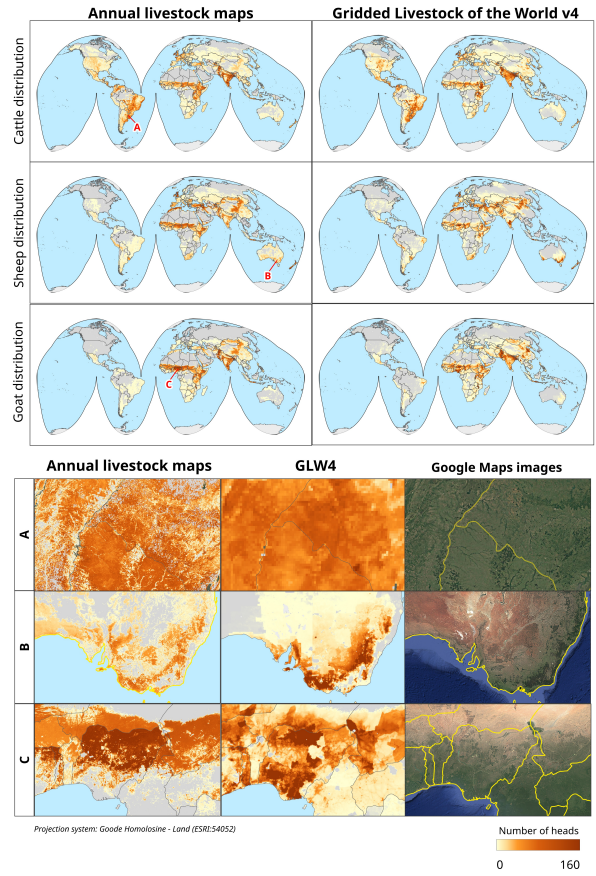 Global annual maps of livestock distribution of cattle, goats, sheep and horses at 1-km spatial resolution convering the period of 2000–2022. The maps were produced using harmonized and used as reference data (52,883 census polygons and 678,266 individual data points), random forest predictive models using and a large stack of multi-source harmonized gridded/raster spatial layers (307 individual raster spatial layers harmonized at 1 km spatial resolution).