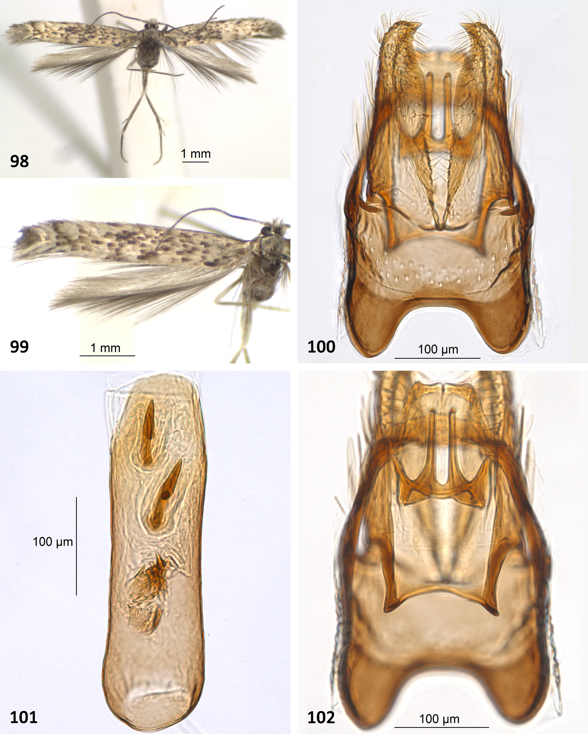 FIGURES 98 – 102 in Leaf-mining Nepticulidae (Lepidoptera) from record high altitudes: documenting an entire new fauna in the Andean páramo and puna