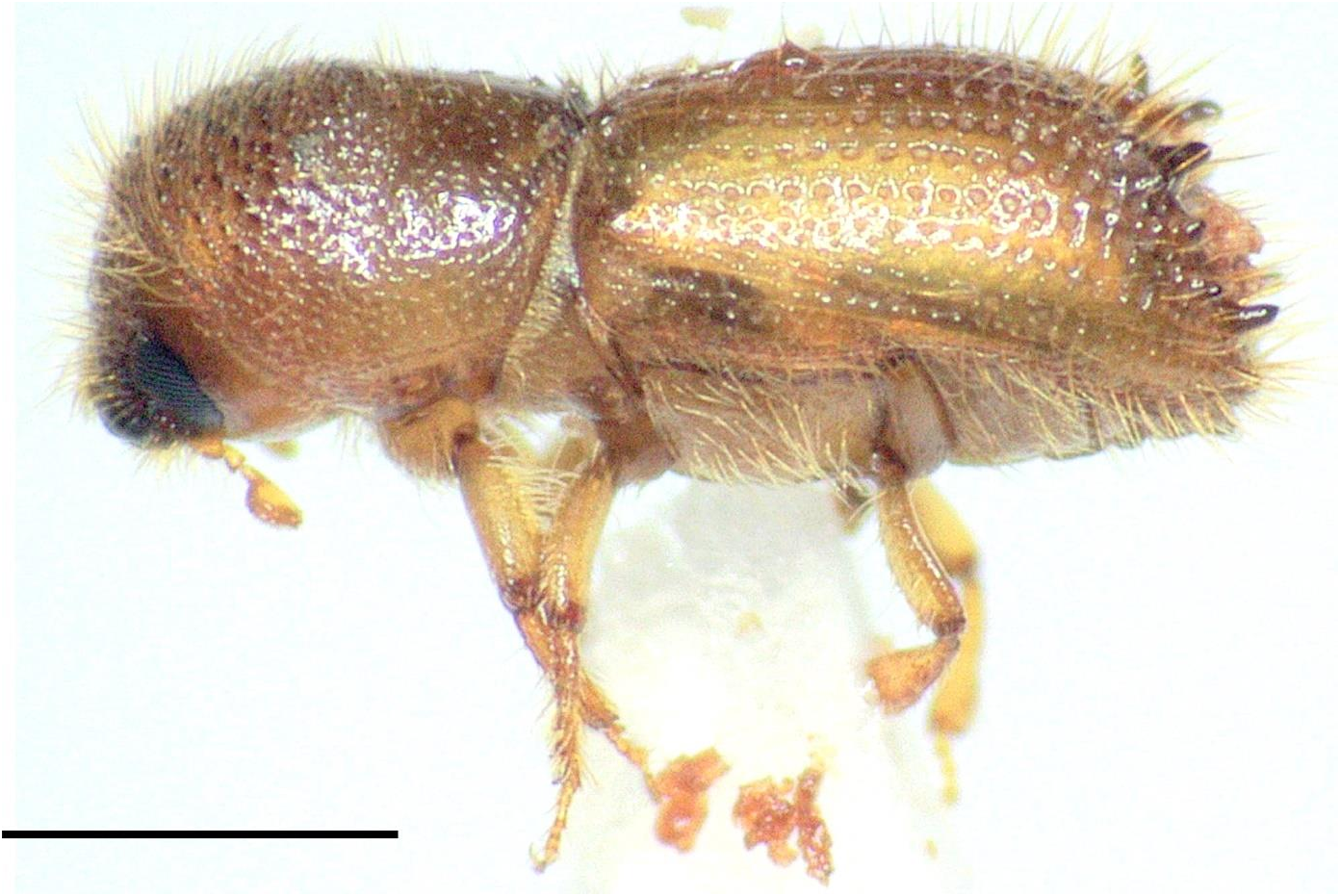 Figure 3. Lateral view of Pityokteines curvidens (Germar, 1823) found in the Collemeluccio silver fir forest. Scale bar = 1 mm. Photo by F. Parisi.