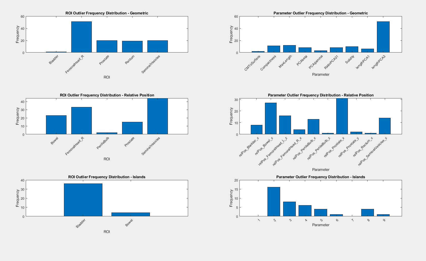 The tool took on average 6.5 seconds to analyse individual ROIs. We identified 138 cases with a value below 1x10e-9. The majority of identified outliers resulted from bad AI delineations of the femoral heads in cases with hip prosthetics. The tool also found severe outliers where parts of the target were delineated as bowel and bladder.
