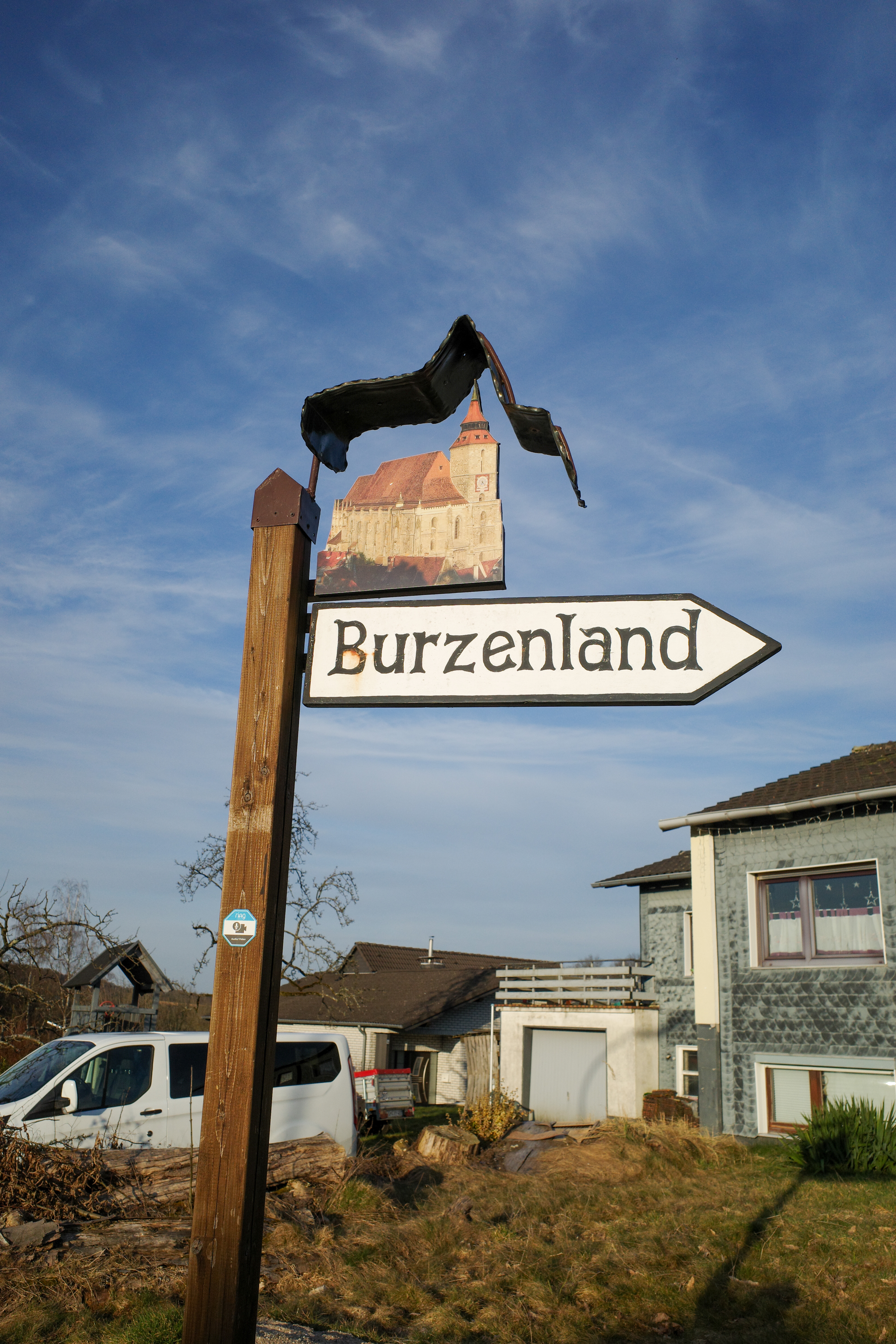 Die Fotos wurden im März 2025 aufgenommen und sollen die Präsenz siebenbürgisch-sächsischer Symbolik innerhalb der Semiotic Landscape in Drabenderhöhe dokumentieren.