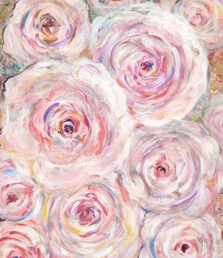The process begins with a luminous underpainting in warm hues (rose, ochre, orange), establishing a foundation of inner light. -