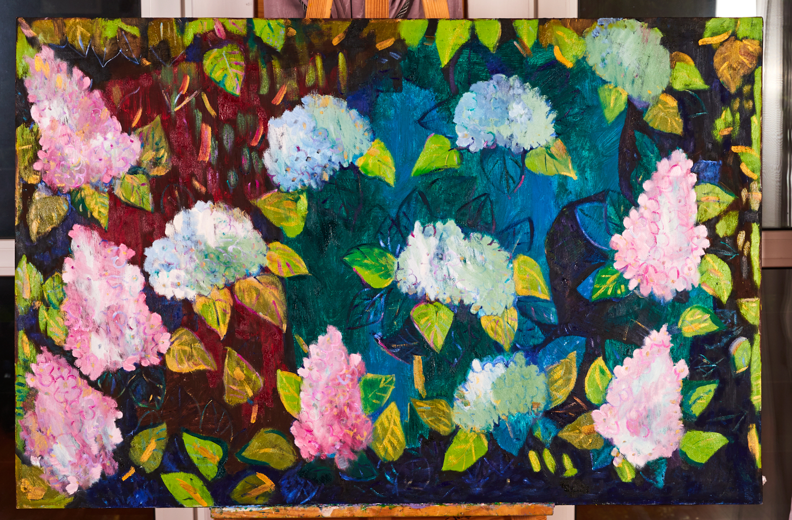 Broad, semi-transparent strokes define rhythmic masses without final form — allowing the painting to breathe. -