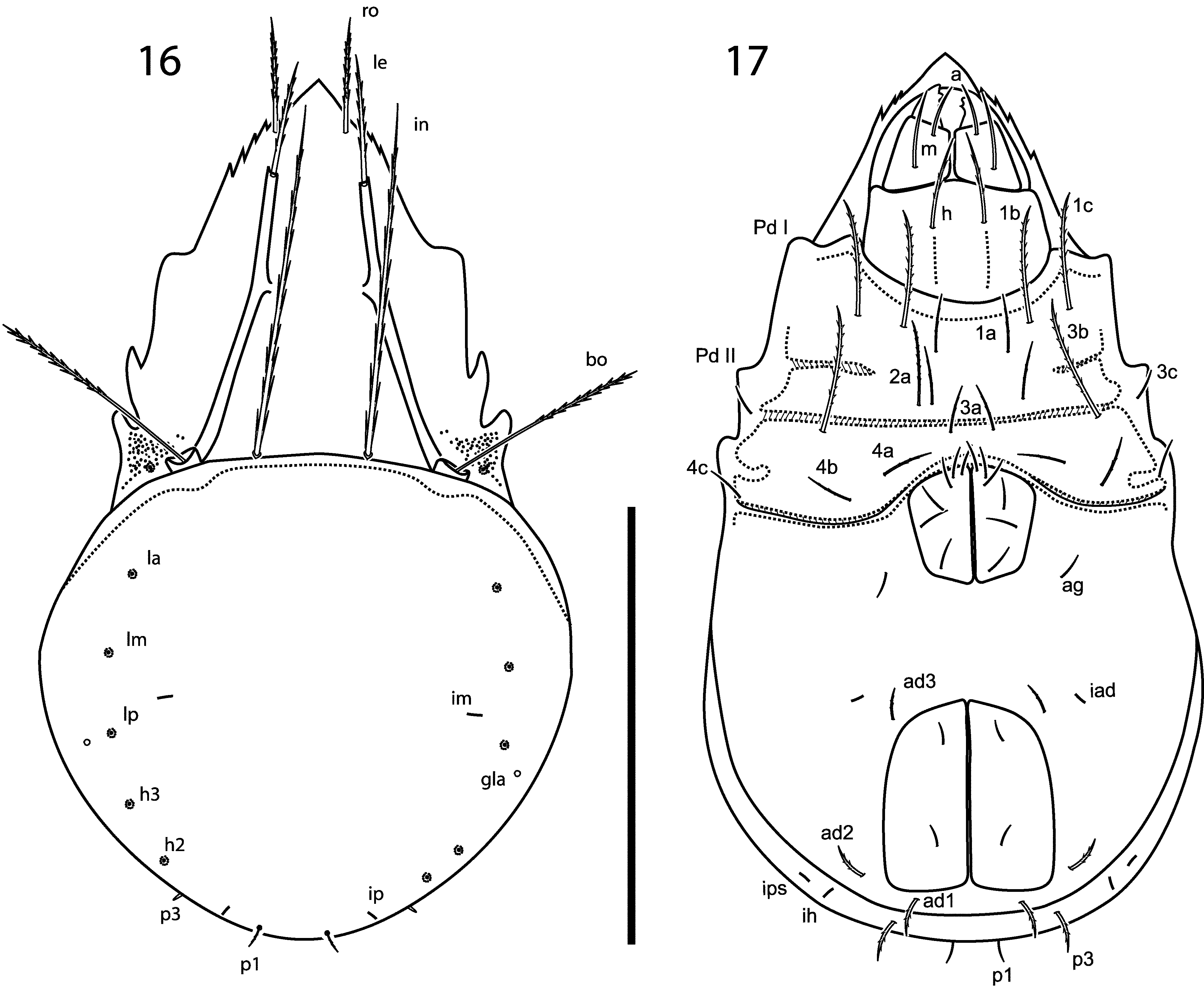 FIGURES 16–17. Ceratoppia tofinoensis n in Five new species of Ceratoppia (Acari: Oribatida: Peloppiidae) from western North America