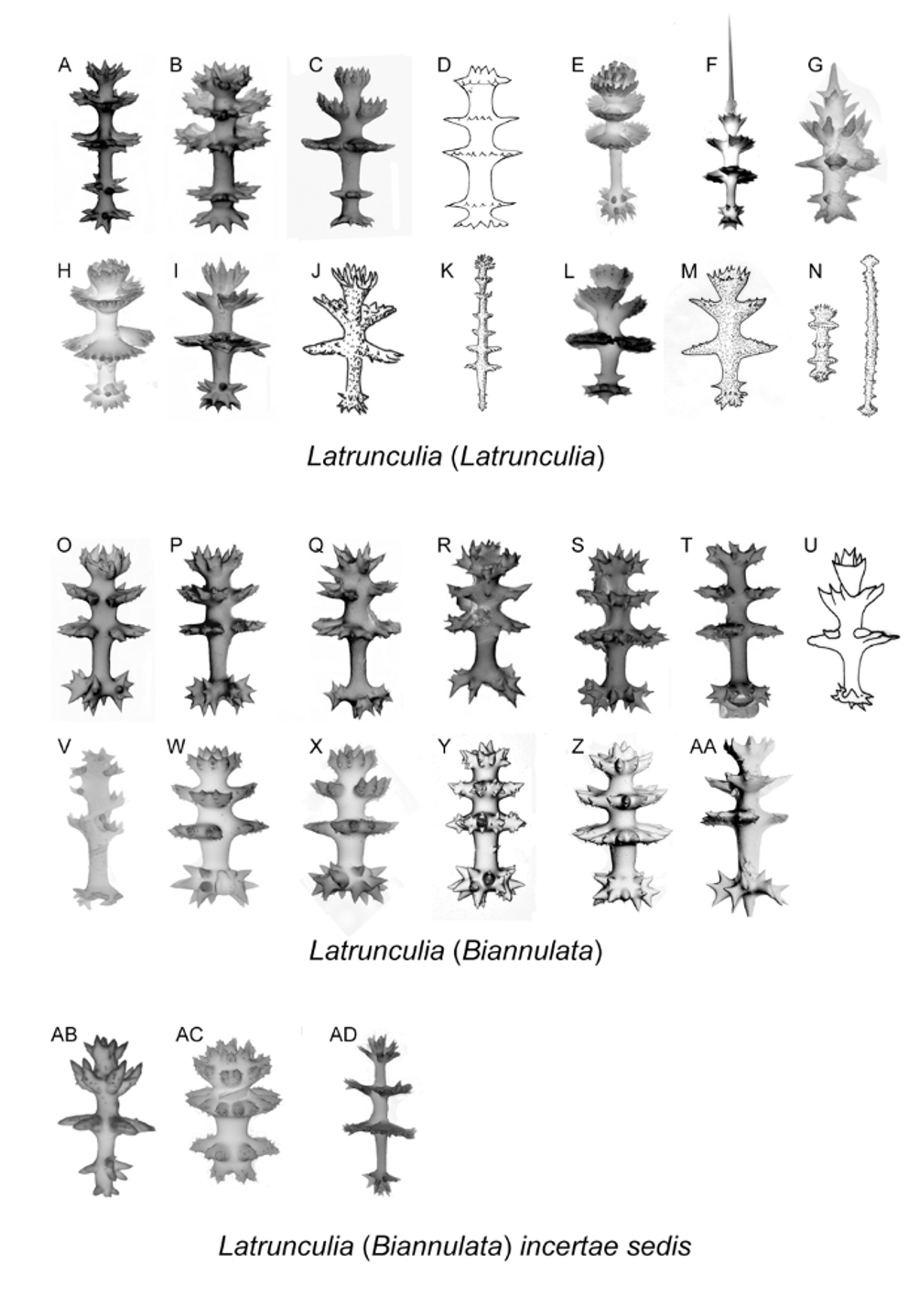 FIGURE 6. A in New species of Latrunculia from the Agulhas shelf, South Africa, with designation of a type species for subgenus Biannulata (Demospongiae, Poecilosclerida, Latrunculiidae)