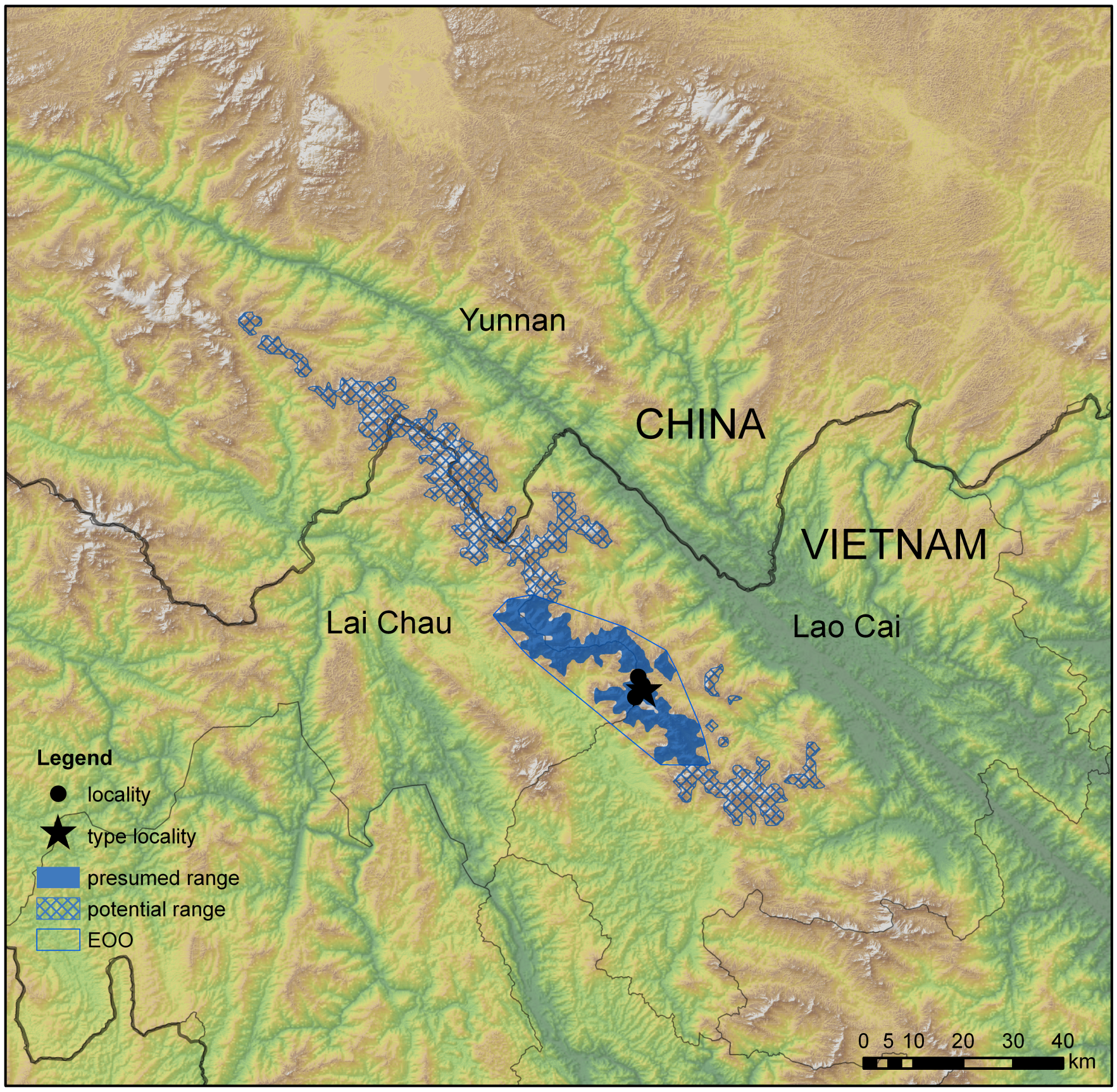 FIGURE 1. Distribution of Megophrys fansipanensis sp. nov. in the Hoang Lien Range, northern Vietnam.
