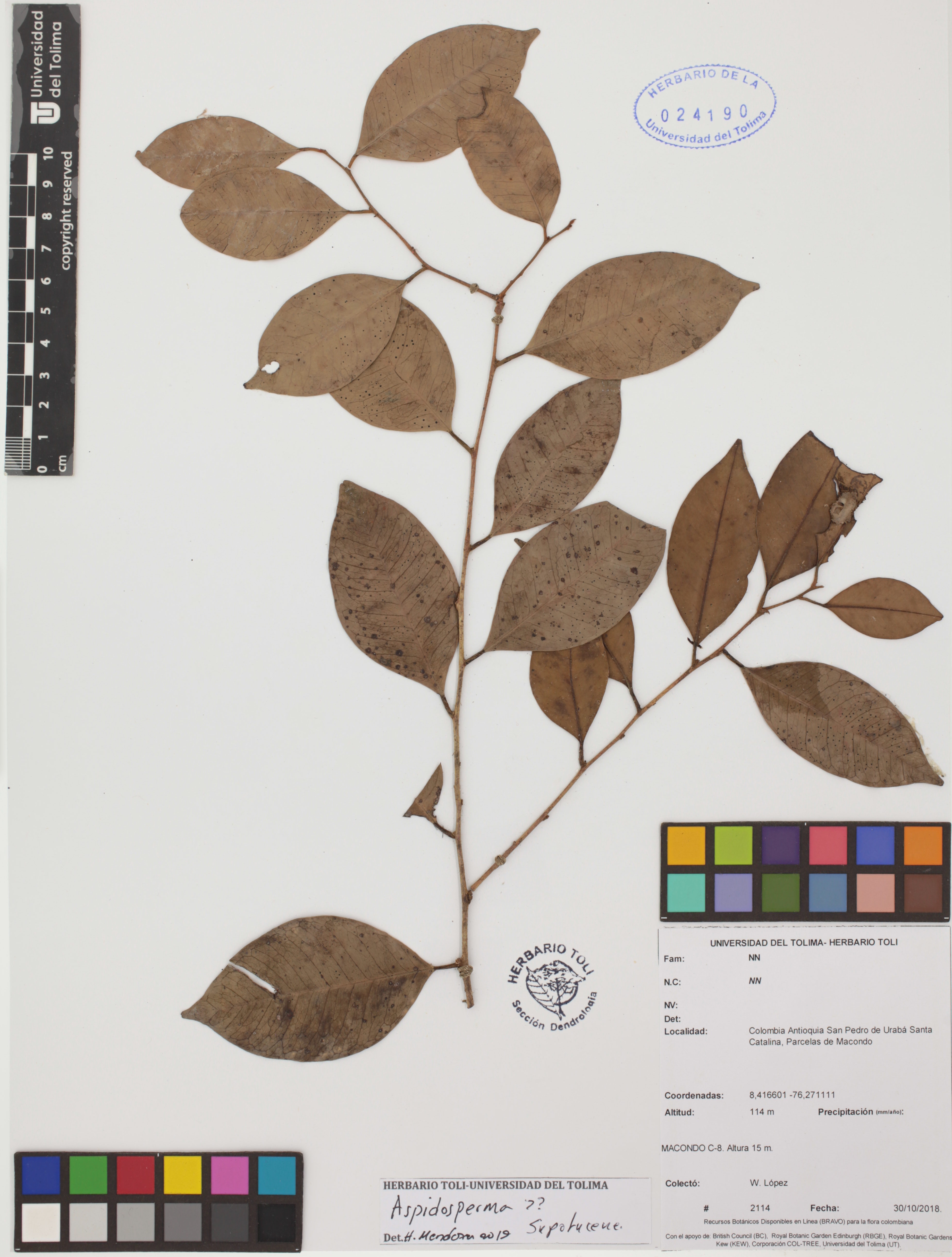 Aspidosperma sp. from Colombia collected by W. López #2114
