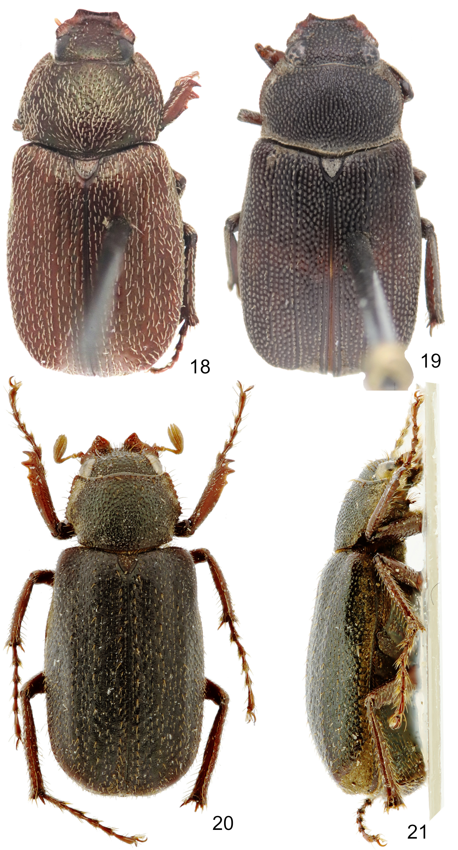 Figs 18–21. Papuan Maechidius Macleay, 1819 in A revision of the Maechidiini Burmeister, 1855 (Coleoptera: Scarabaeidae: Melolonthinae) from the Indo-Australian transition zone, and the first record of the tribe west of Wallace's Line