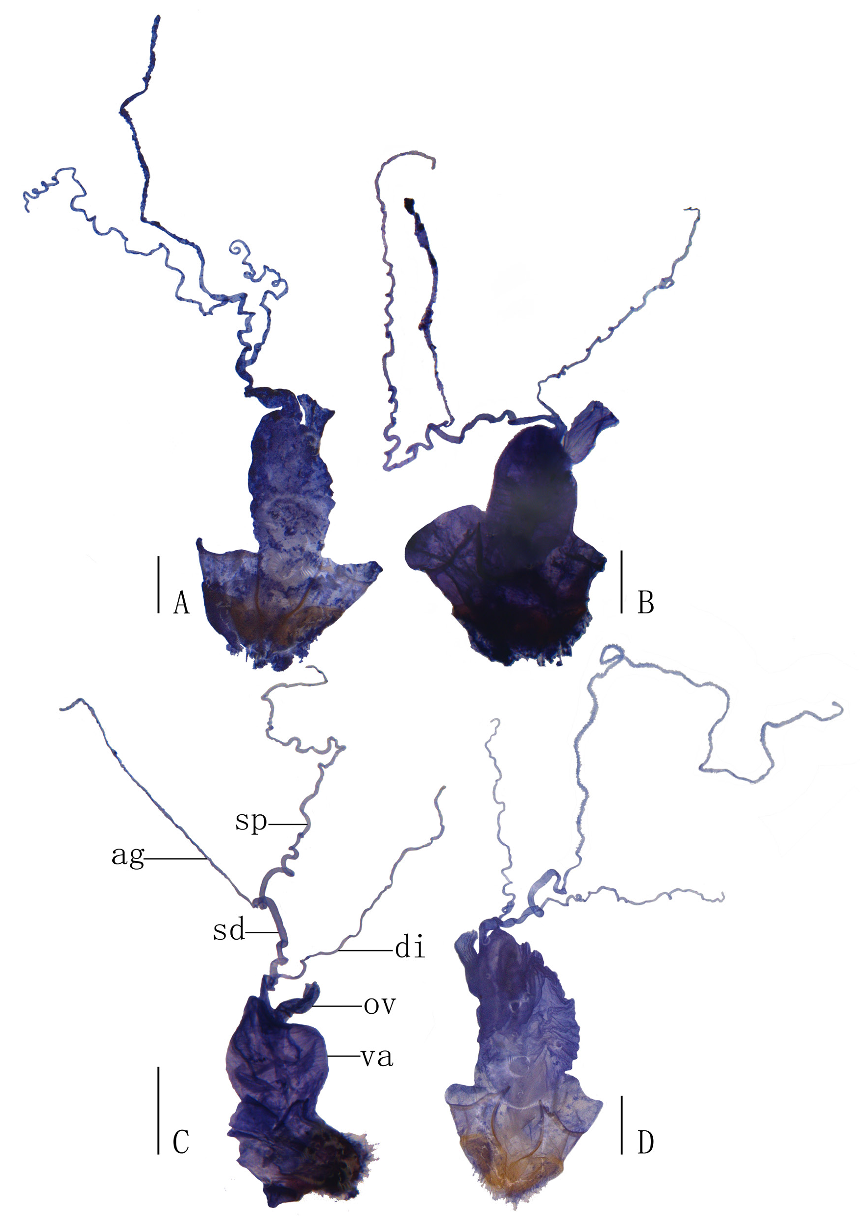 Fig. 8. Female reproductive system, ventral view. A. Stenothemus grahami Wittmer, 1974 in Taxonomic revision of the species of Stenothemus from Southwest China (Coleoptera, Cantharidae), with the descriptions of five new species