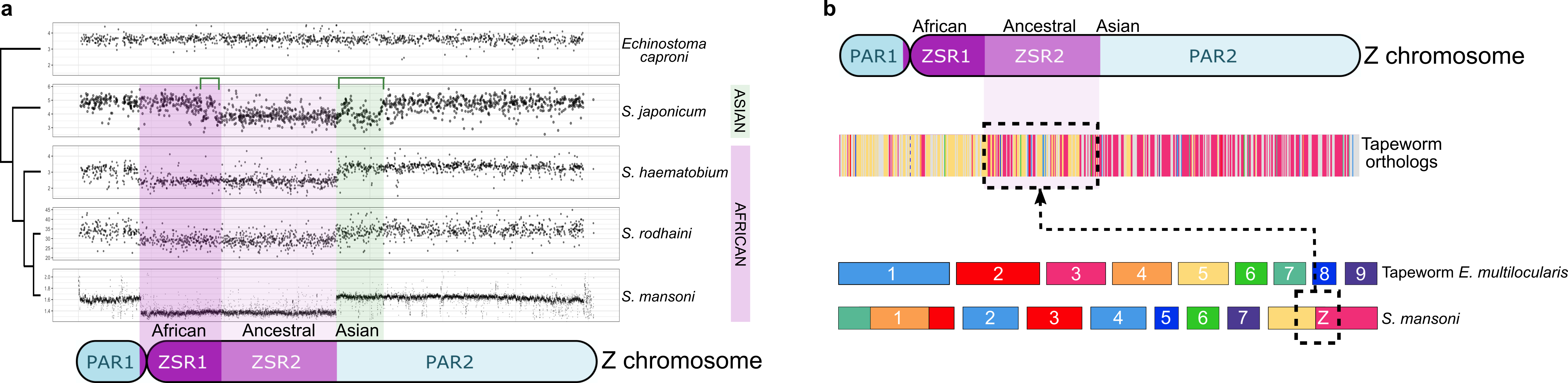 Assembled chromosomes of the blood fluke Schistosoma mansoni provide insight into the evolution of its ZW sex-determination system
