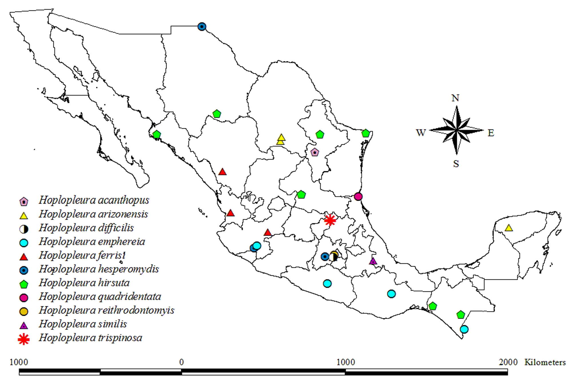 FIGURE 2. Geographical distribution of Hoplopleuridae reported from Mexico.