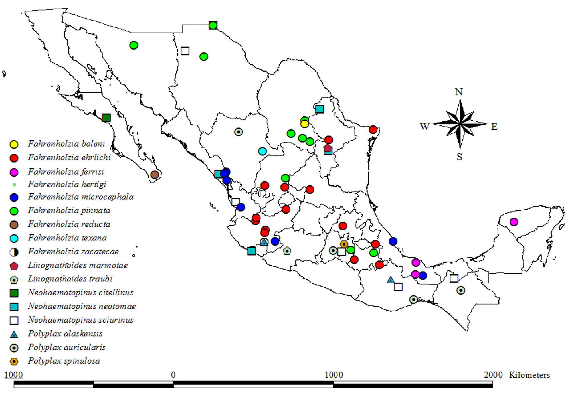 FIGURE 3. Geographical distribution of Polyplacidae reported from Mexico.