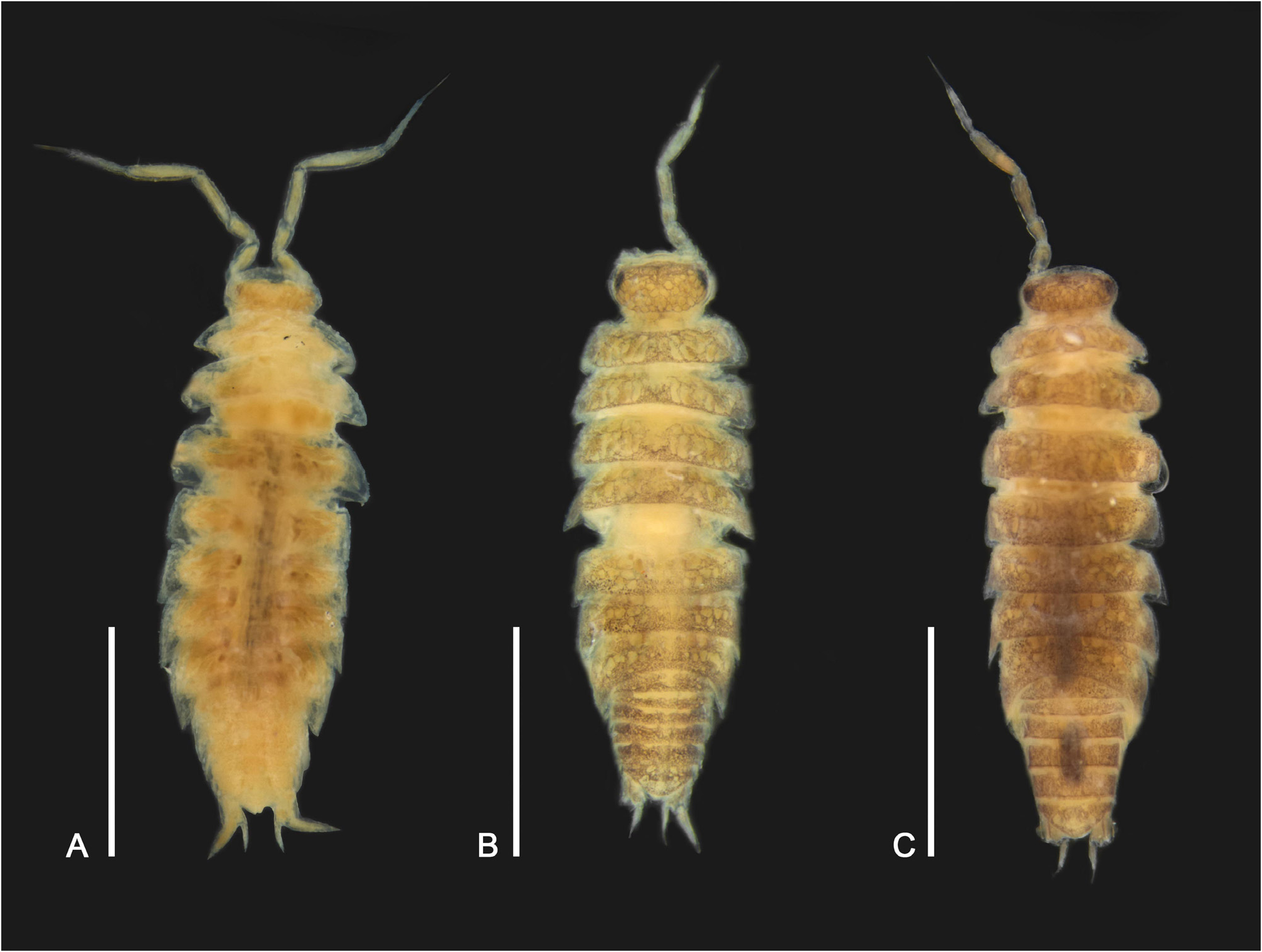 FIGURE 13. A–C, A in Three new species of Androdeloscia Leistikow, 1999 (Oniscidea: Philosciidae) from the Brazilian Amazonia
