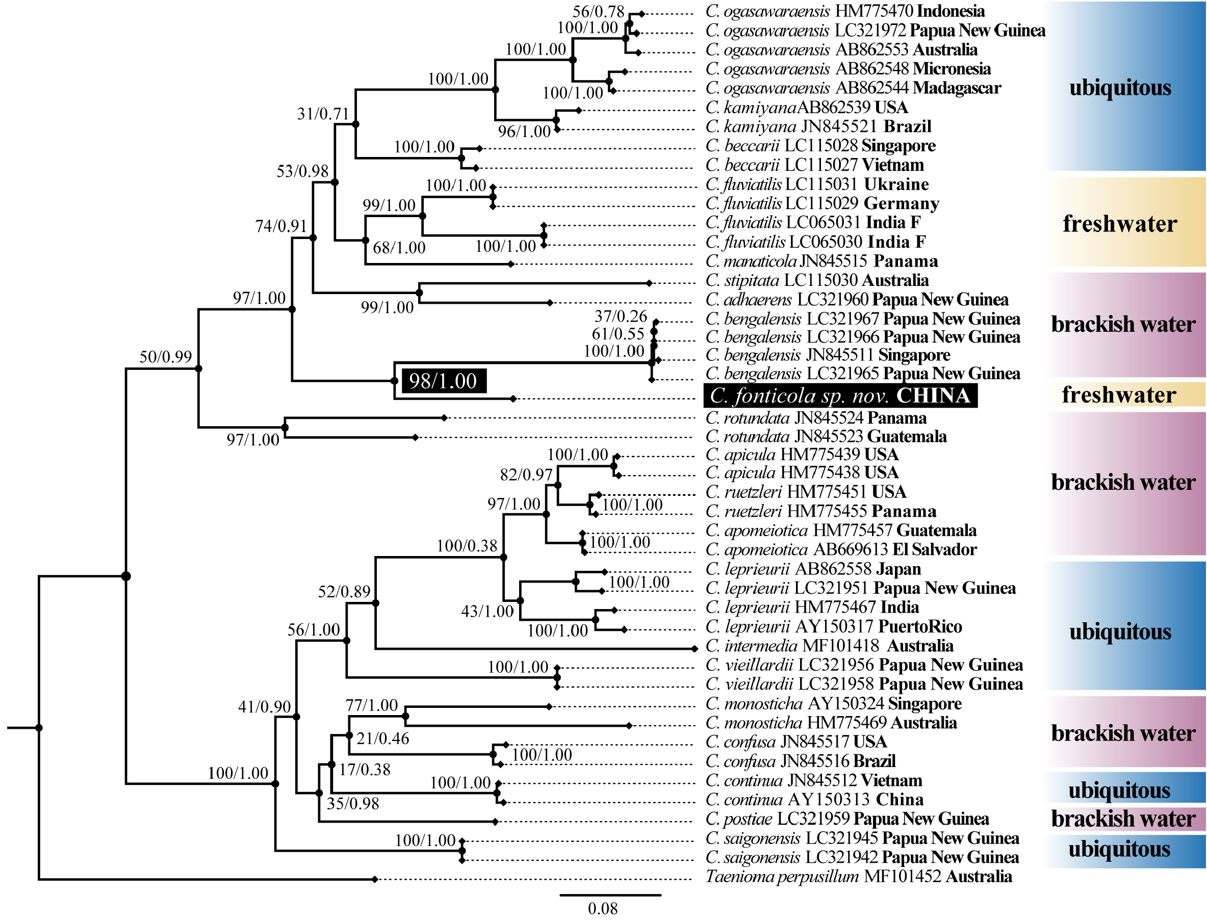 FIGURE 4 in Morphological and molecular evidence for the recognition of Caloglossa fonticola sp. nov. (Delesseriaceae, Rhodophyta) from an underground spring in Guangxi, China
