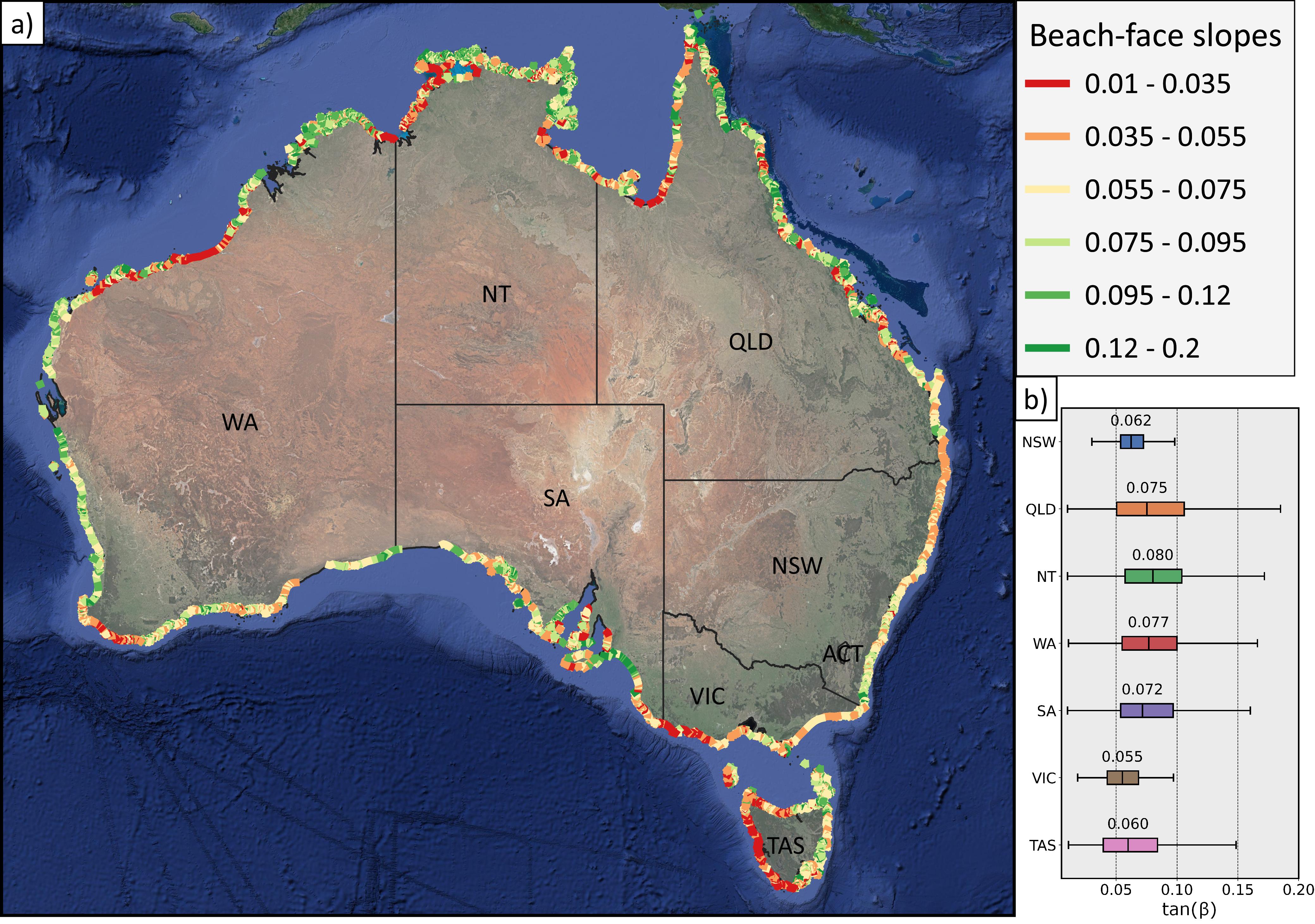 Vos, K., Deng, W., Harley, M. D., Turner, I. L., and Splinter, K. D. M.: Beach-face slope dataset for Australia, Earth Syst. Sci. Data, 14, 1345–1357, https://doi.org/10.5194/essd-14-1345-2022, 2022.
