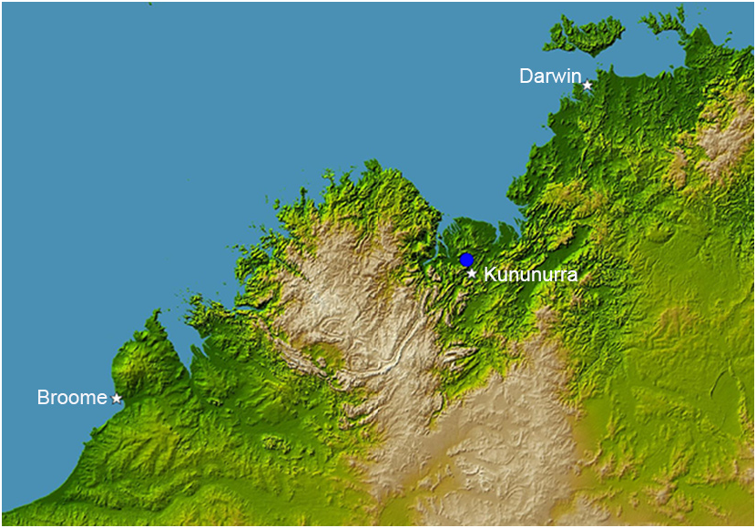 FIGURE 11. Liomenochilus ongi Hutchinson & Allsopp, new species, known distribution (blue dot) in northwestern Australia.