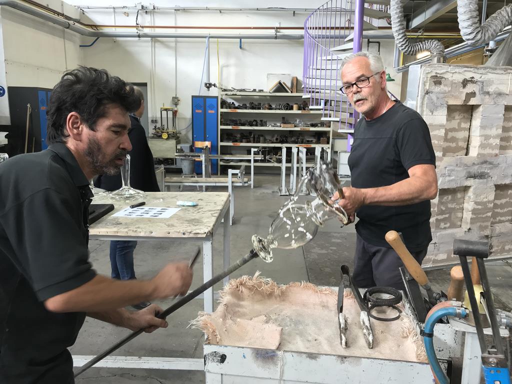 This is the process of making a carafe Bontemps. The step depicted is called "Annealing"(from the Mingei project).
