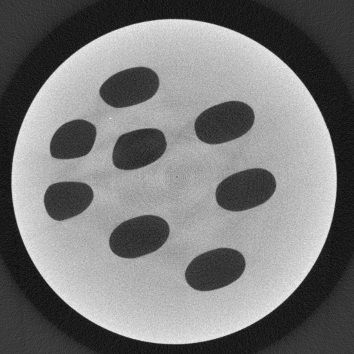 As the orientation of CT reconstructions can depend on the tools used, we have included example reconstructions for each of the phantoms to demonstrate how the reconstructions obtained from the sinograms and the specified geometry should be oriented. The reconstructions have been computed using the filtered back-projection algorithm provided by the ASTRA Toolbox.
