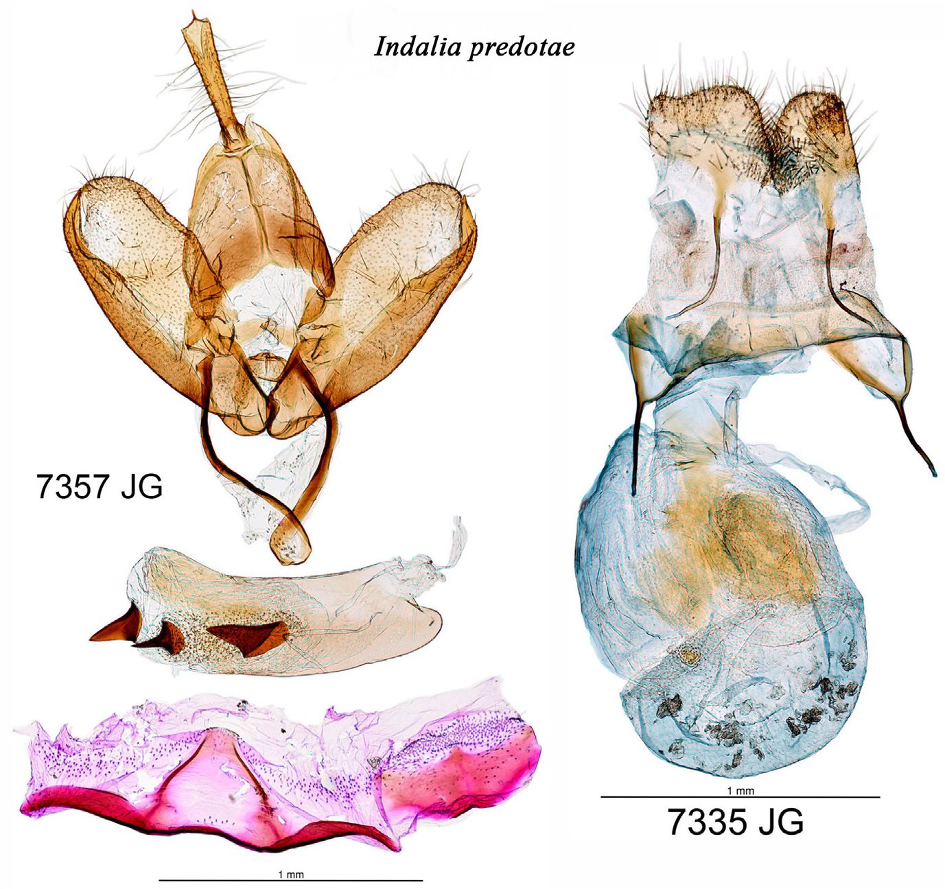 FIGURE 57. Indalia predotae male and female genitalia, gen. prep. 7357JG, Valdevacer, Albarracín, Teruel (Spain); 7335JG, Valdevacer, Albarracín, Teruel (Spain).
