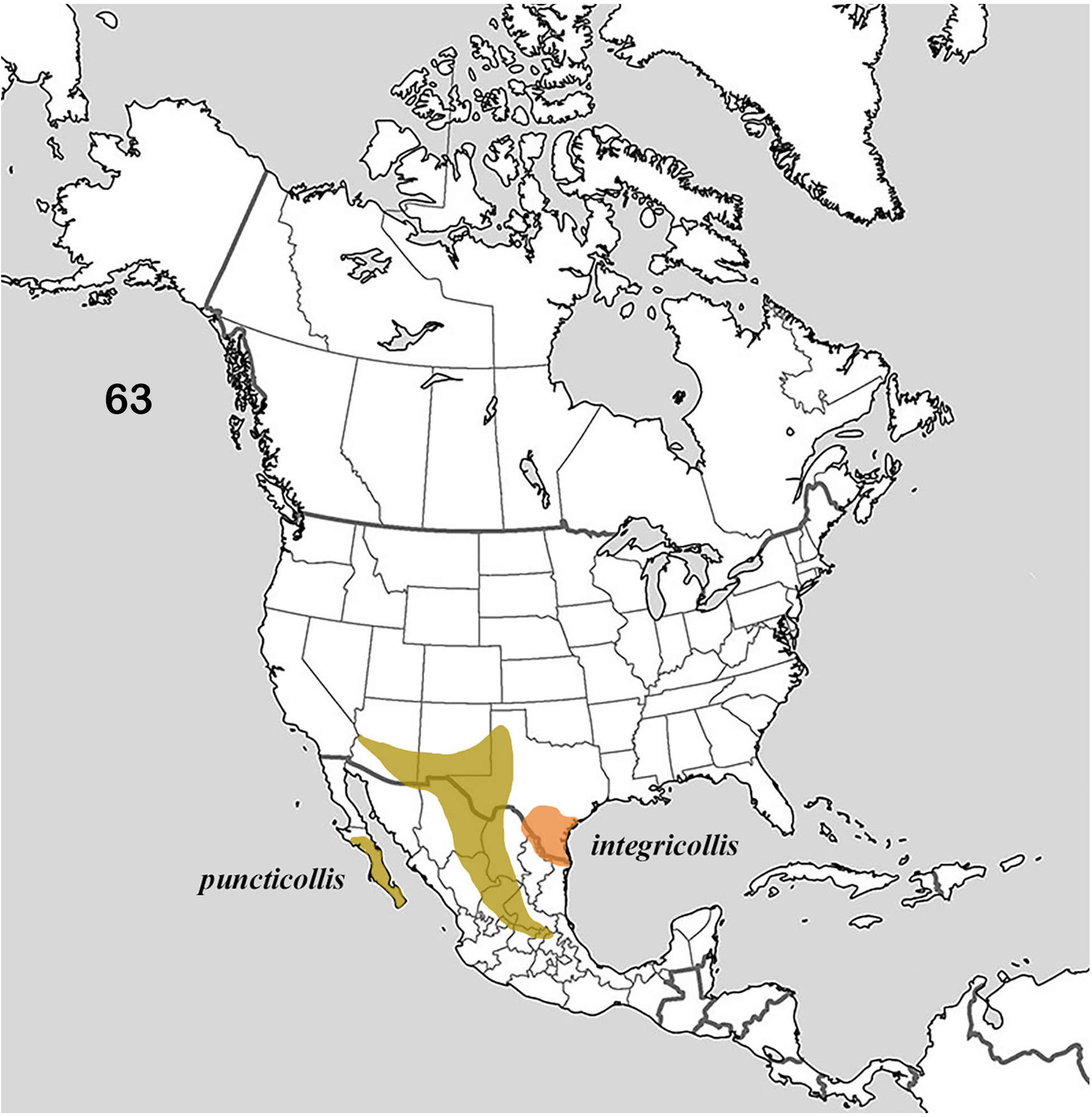 Figure 63. Approximate distributions of Boreocanthon puncticollis (LeConte) and B. integricollis (Schaeffer).