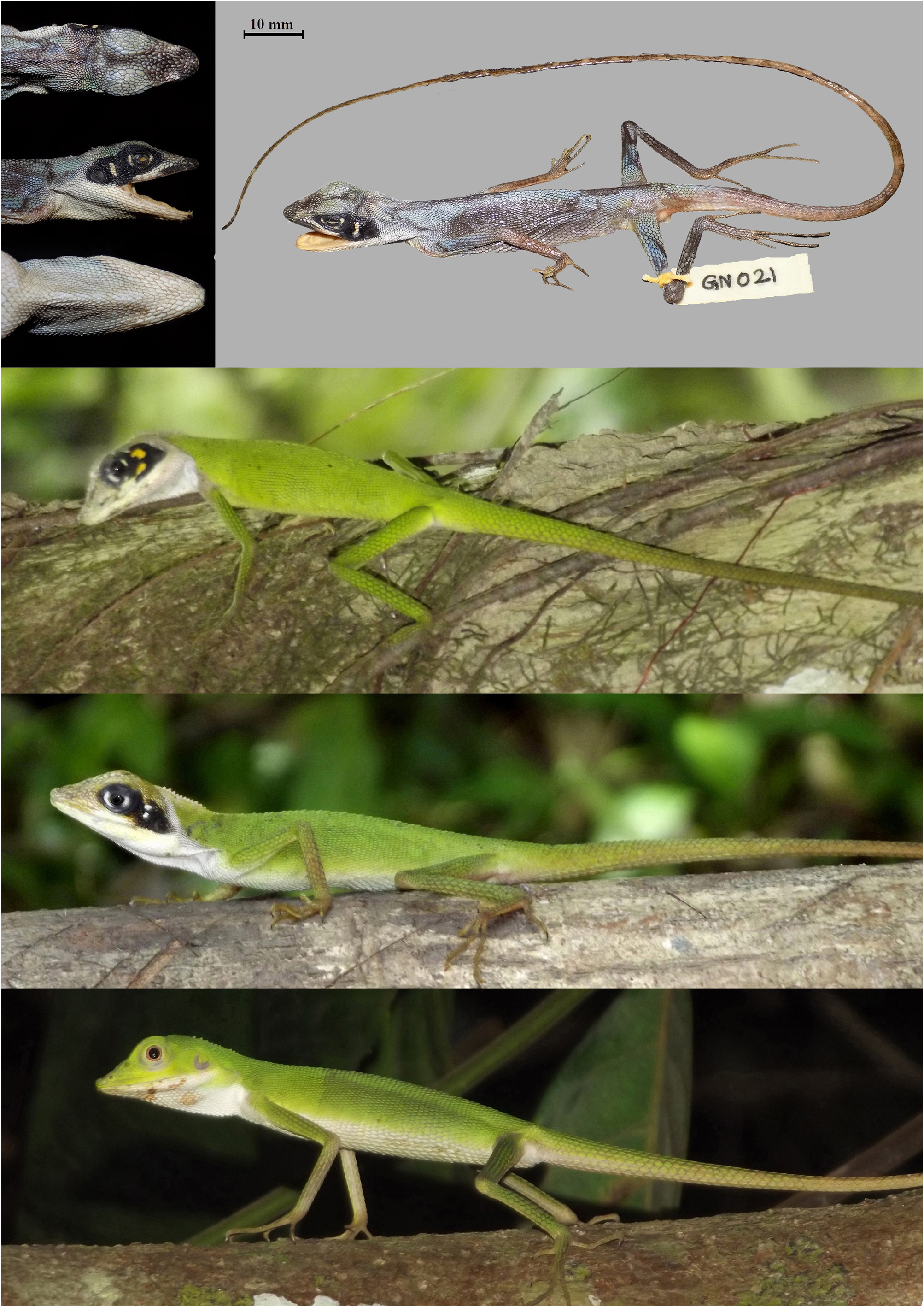 FIGURE 5. Bronchocela danieli (top: DOSMB 05025, middle: live males, below: live female).