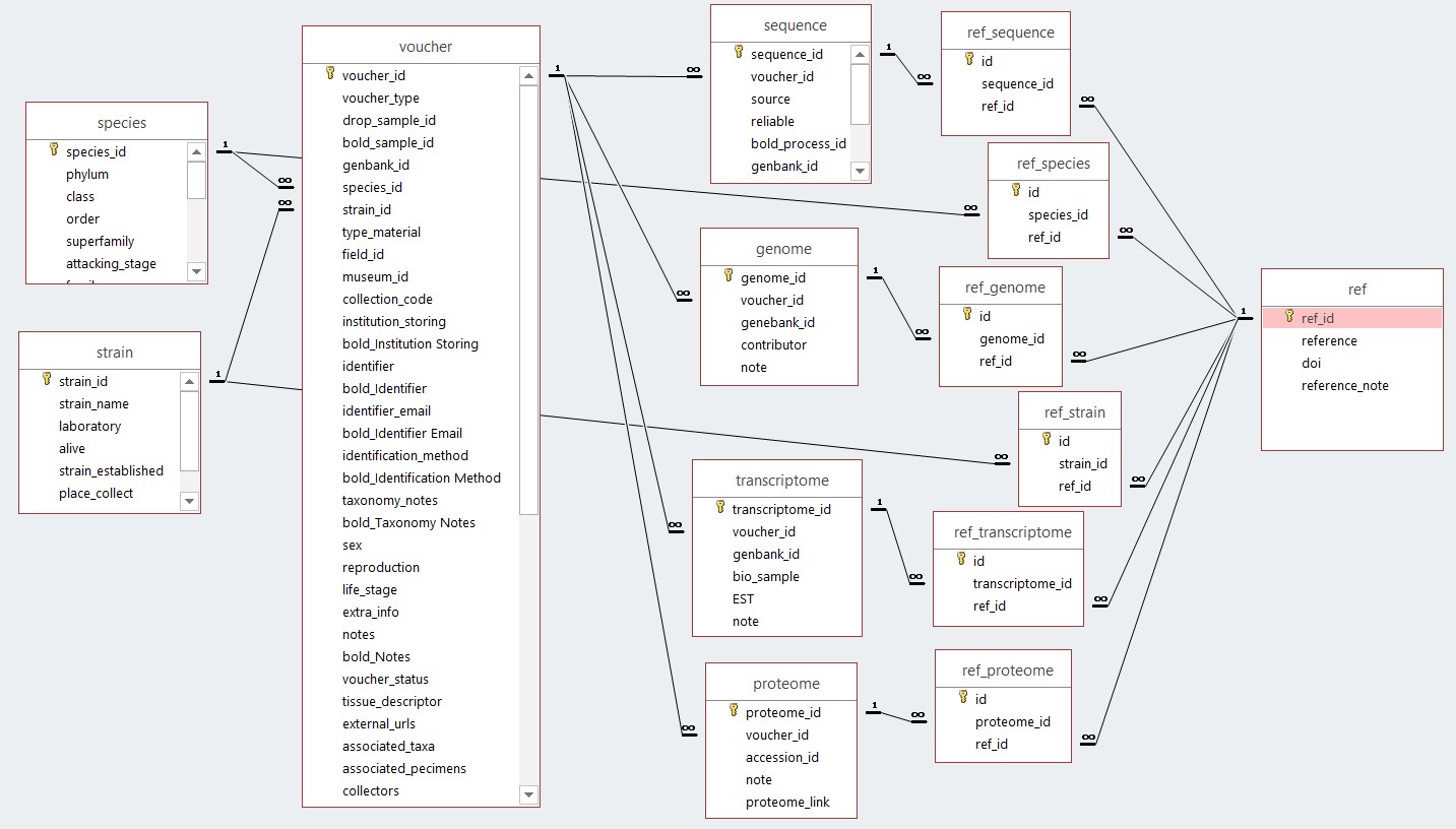 A curated open-access molecular reference database for Drosophila parasitoids (DROP). Identifying Drosophila parasitoids is challenging and poses major impediment to realize the full potential of this model system in studies ranging from molecular mechanisms to food webs, and in biological control of Drosophila suzukii. In DROP, genetic data are linked to voucher specimens and, where possible, the voucher specimens are identified by taxonomists and vetted through direct comparison with primary type material. An updated taxonomic catalogue for the research community is also part of DROP. DROP offers accurate molecular identification and improves cross-referencing between individual studies that we hope will catalyze research on this diverse and fascinating model system. Our effort should also serve as an example for researchers facing similar molecular identification problems in other groups of organisms.