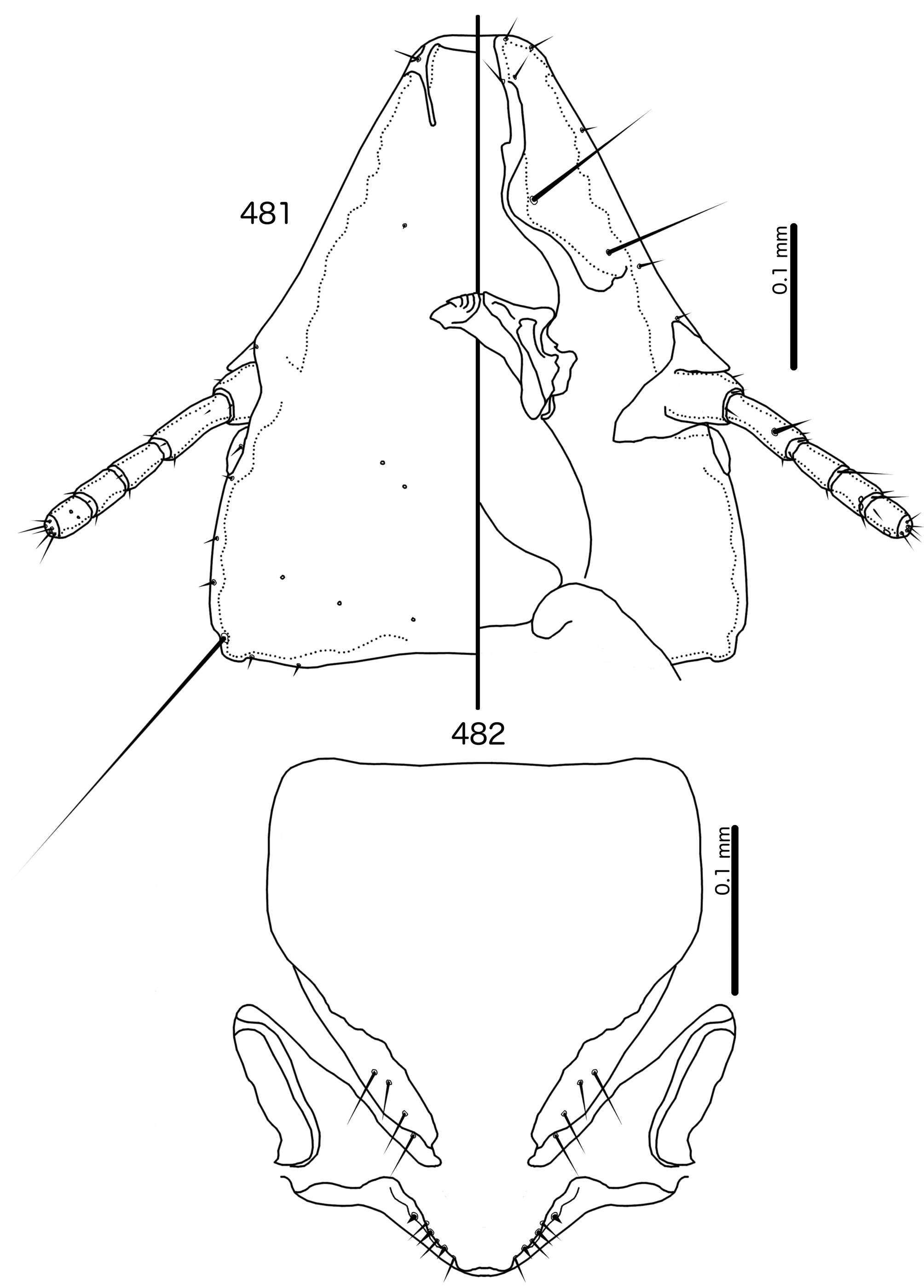 FIGURES 481–482 in Morphological revision of the hyperdiverse Brueelia - complex (Insecta: Phthiraptera: Ischnocera: Philopteridae) with new taxa, checklists and generic key